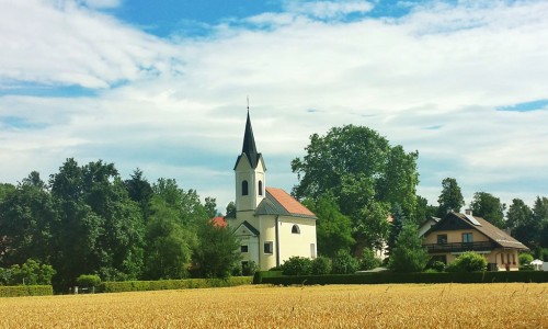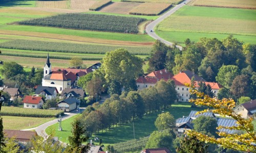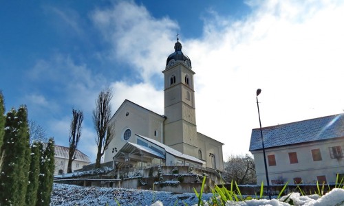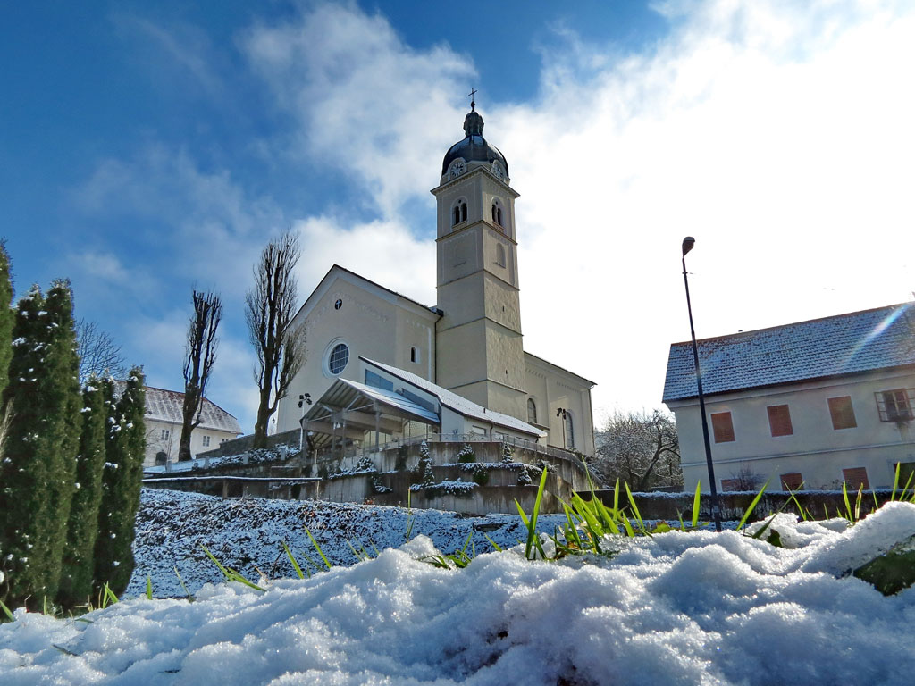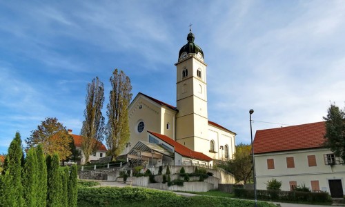 Baročna cerkev iz druge polovice osemnajstega stoletja je v neposredni soseščini dvorca Lazarini in je bila zgrajena na mestu starejše cerkve. V njej sta dve kvalitetni sliki Leopolda Layerja o Kristusovem trpljenju in bogato izrezljana prižnica s podobami ljudskih svetnic Barbare, Neže, Agate, Katarine, Polone in Lucije.