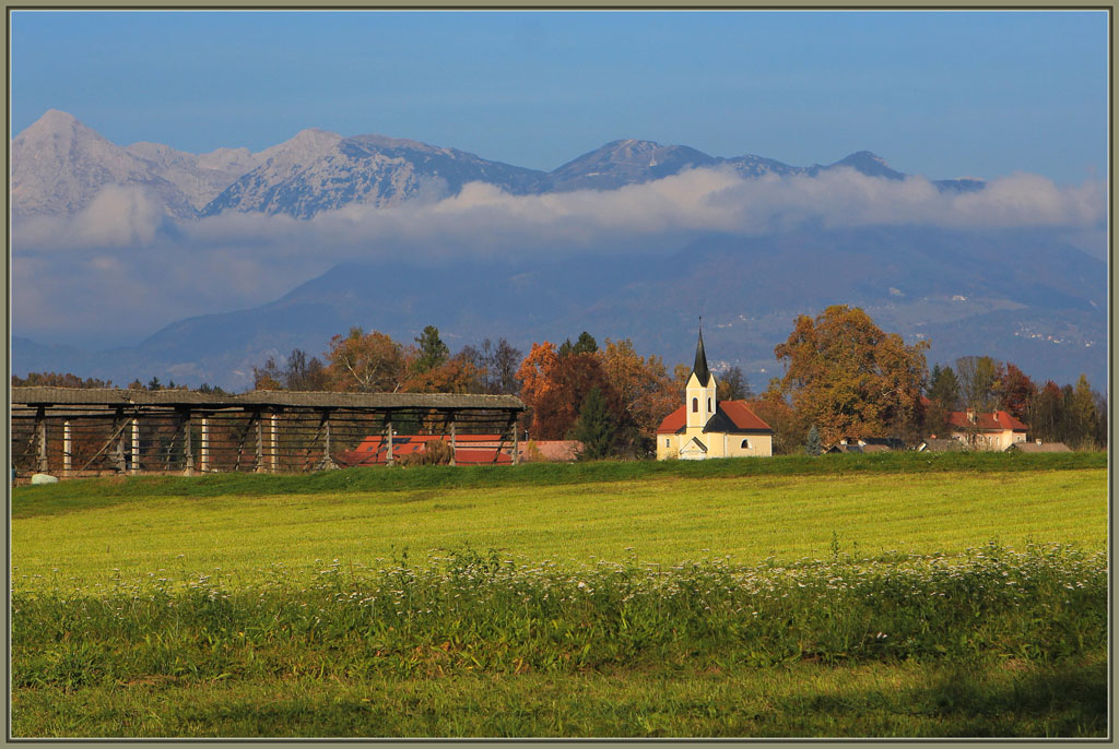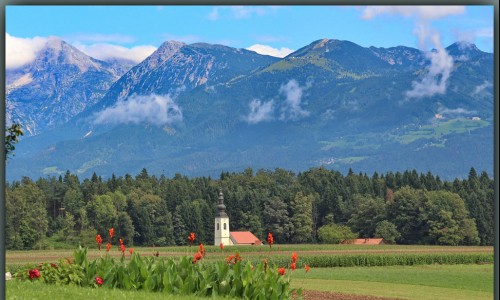 Preprosta cerkev stoji na skalni pečini tik nad Savo. Cerkev je bila v preteklosti zelo zapuščena, zato sta se duhovnika, rojaka iz Moš, sredi devetnajstega stoletja odločila, da jo bosta na lastne stroške popravila, kupila pa sta tudi vso opremo, in sicer v gotskem stilu.