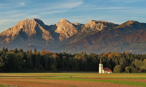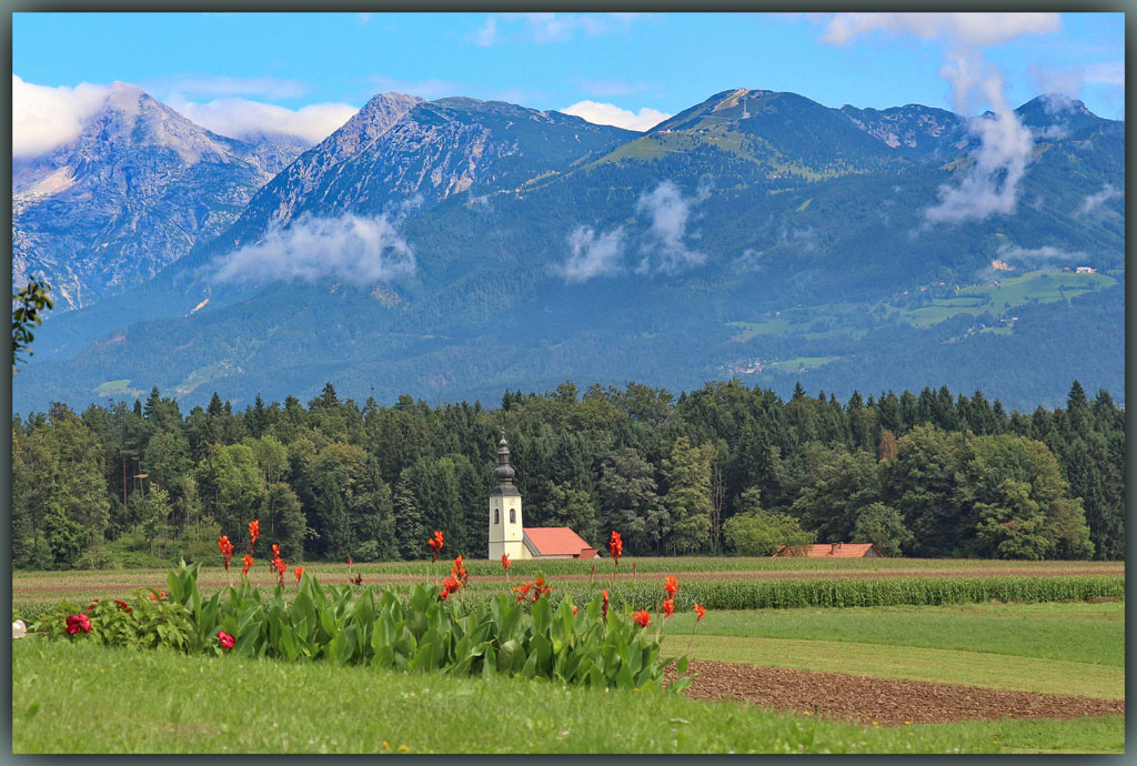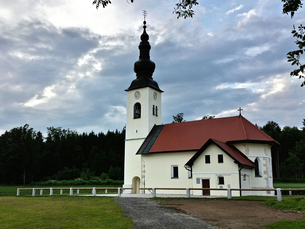 Preprosta cerkev stoji na skalni pečini tik nad Savo. Cerkev je bila v preteklosti zelo zapuščena, zato sta se duhovnika, rojaka iz Moš, sredi devetnajstega stoletja odločila, da jo bosta na lastne stroške popravila, kupila pa sta tudi vso opremo, in sicer v gotskem stilu.