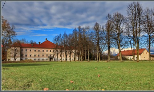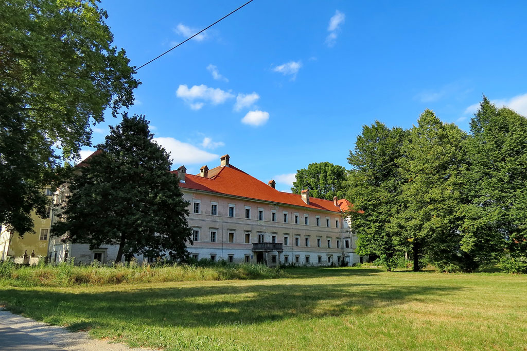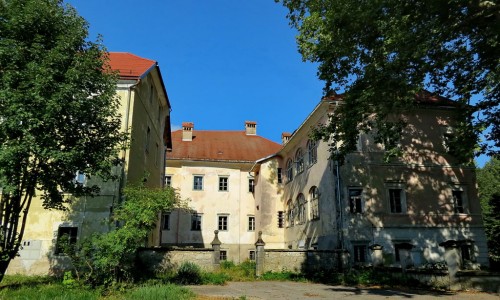 Ker v sedemnajstem stoletju ni bilo več zunanje nevarnosti, so graščaki smledniški Stari grad opustili in na mestu grajske pristave, v ravnini v Valburgi, zgradili novo graščino, dvorec v renesančnem slogu, ki je sedanjo podobo dobil v času, ko je bil v lasti barona Franca Smledniškega. V viteški dvorani in kapeli so znamenite baročne freske nemškega slikarja Eustachiusa Gabriela. Na freskah v viteški dvorani so upodobljene štiri skupine antičnih bogov, ki predstavljajo letne čase. Družina Smledniških se je zaradi velikih gradbenih del na dvorcu in Kalvariji zadolžila in je morala zato posest leta 1795 prodati. S tem se je končalo pomembno, več sto let trajajoče obdobje baronov Smledniških. Graščino in posest so kupili baroni Lazariniji in v njihovi lasti je graščina še danes.
