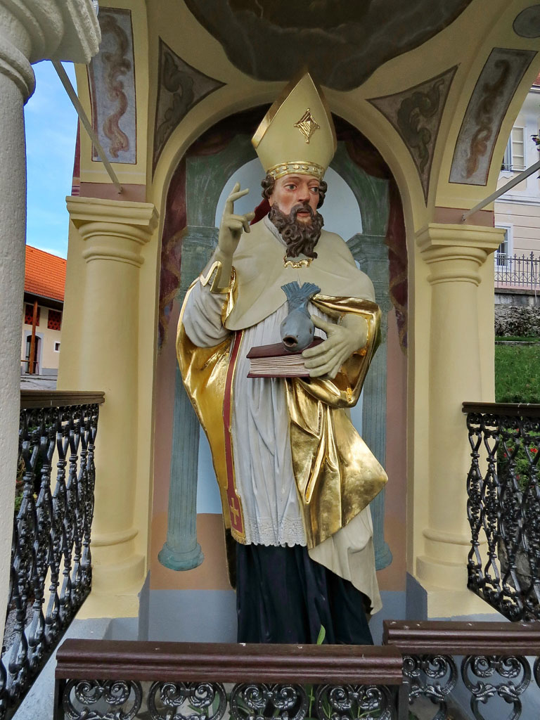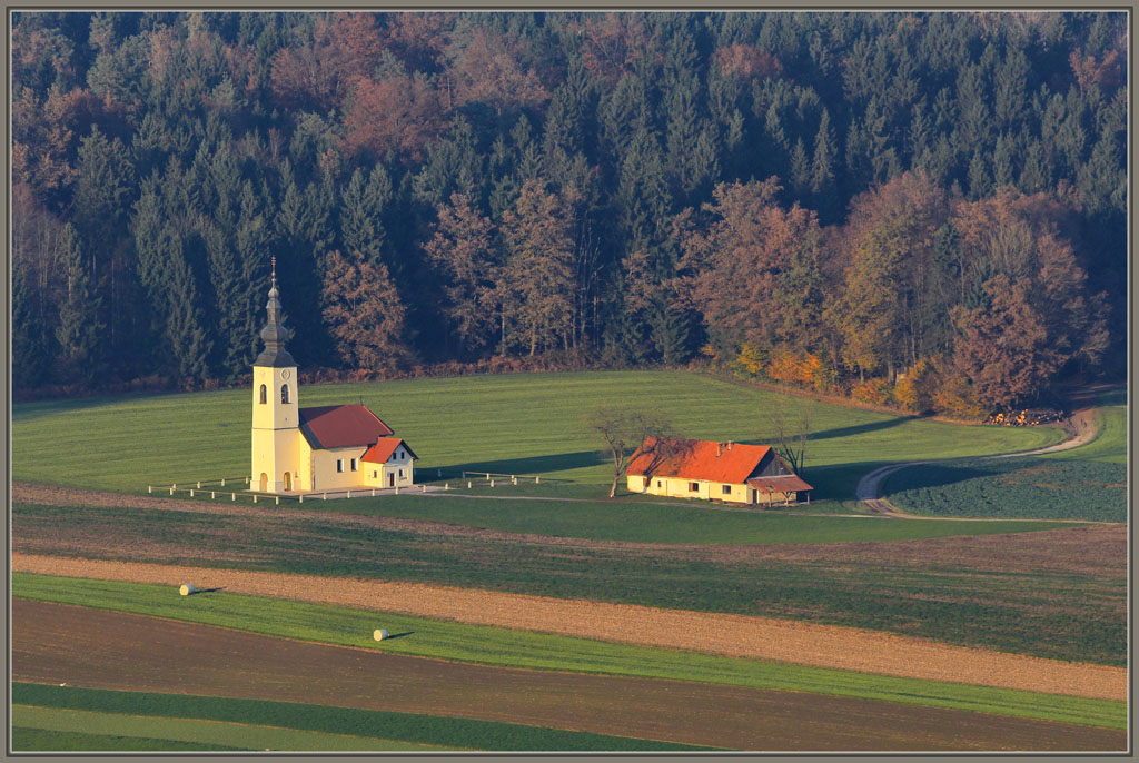 Baročna cerkev iz druge polovice osemnajstega stoletja je v neposredni soseščini dvorca Lazarini in je bila zgrajena na mestu starejše cerkve. V njej sta dve kvalitetni sliki Leopolda Layerja o Kristusovem trpljenju in bogato izrezljana prižnica s podobami ljudskih svetnic Barbare, Neže, Agate, Katarine, Polone in Lucije.