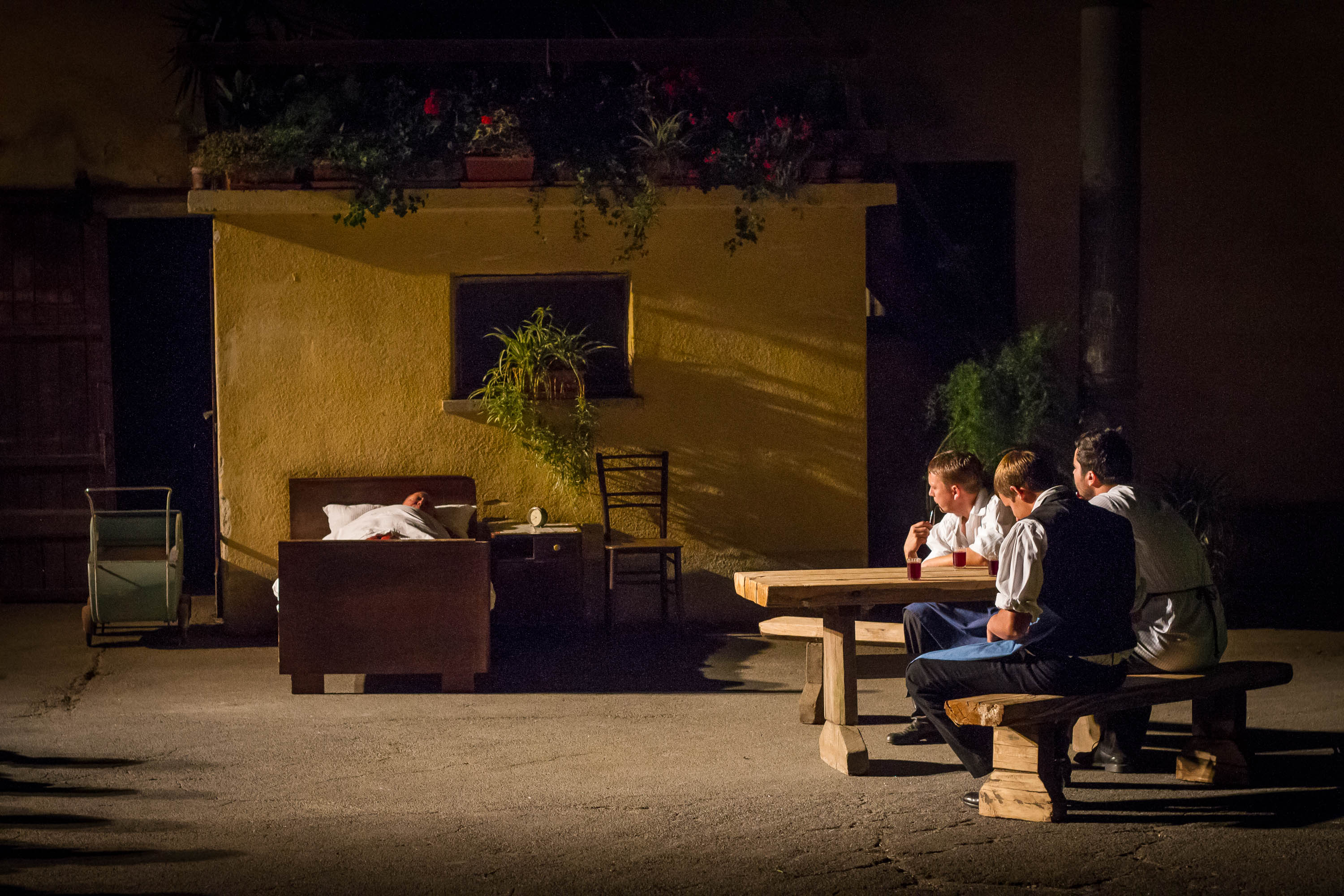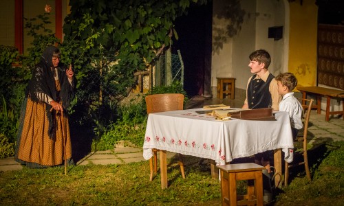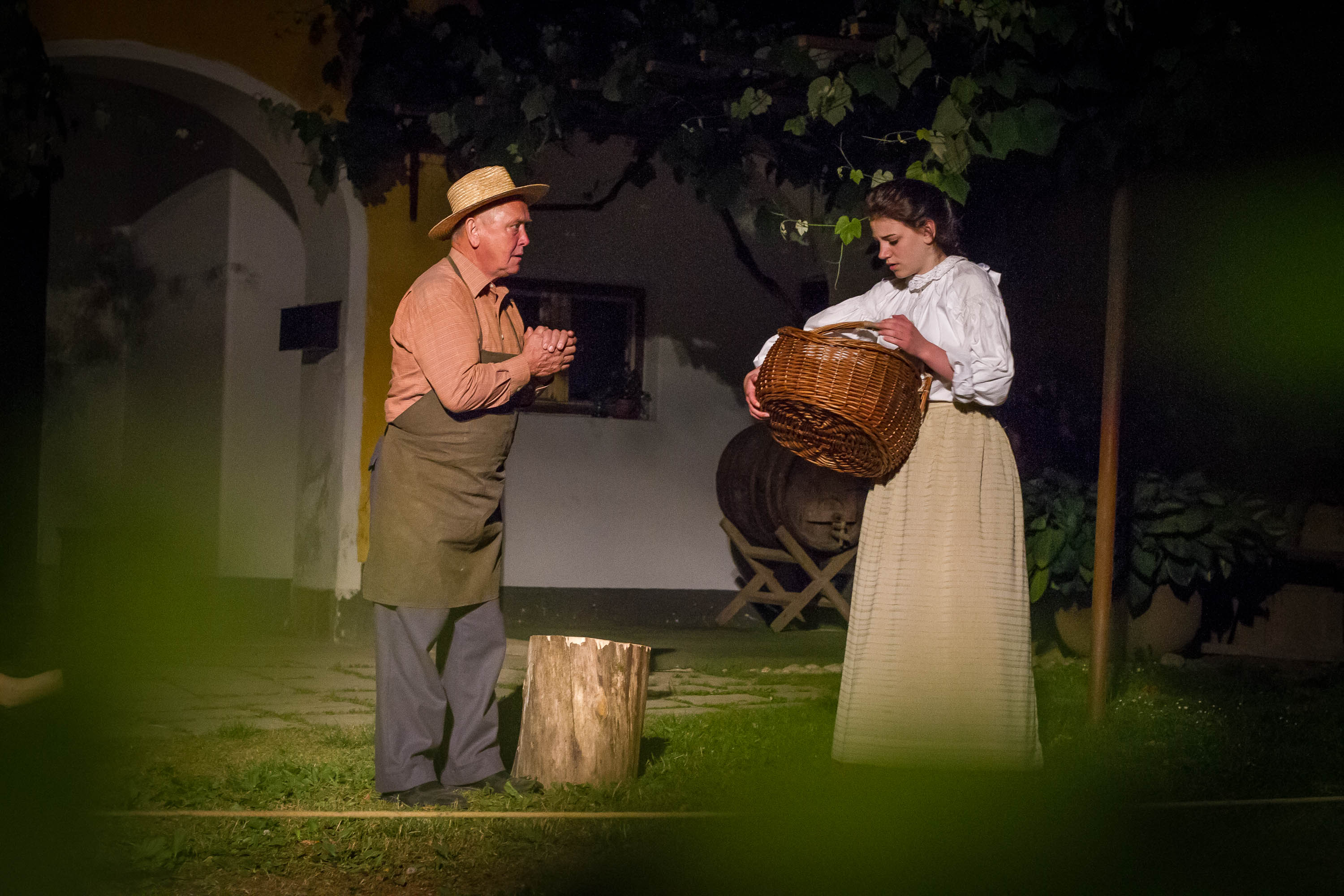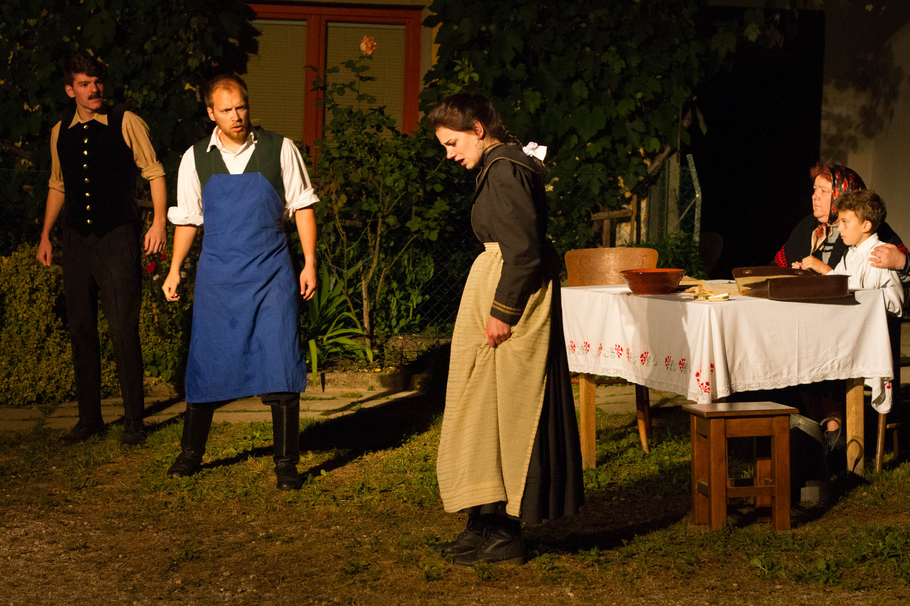 5. junija 2015 pa je dozorela naša večletna želja po izvedbi predstave na prostem s premierno uprizoritvijo besedila Manice Komanove Prisega o polnoči na dvorišču domačije Merjaščevih v Smledniku. 50 članska ekipa sodelujočih je štela skoraj 30 članski igralski ansambel, pevce Lovskega pevskega zbora Medvode, Smleške pritrkovalce ter vse ostale sodelujoče, ki niso bili vidni iz prve vrste, so pa skrbeli za to, da se je ljudska igra v štirih dejanjih v naslednjih tednih izvedla še 10-krat, predstavo pa si je ogledalo okrog 1500 gledalcev.